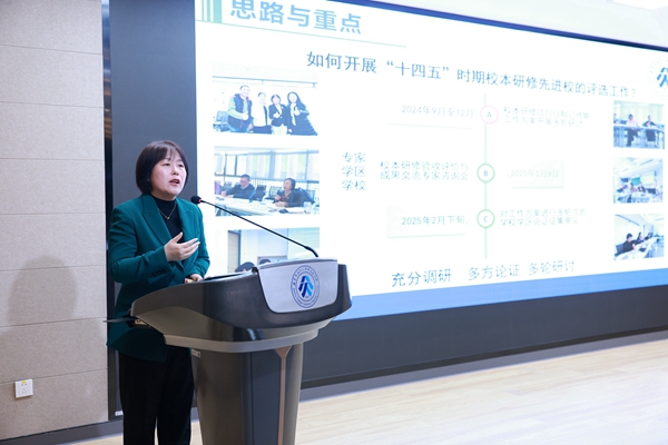 海淀区教师进修学校师训部副主任马萍在工作方案解读时指出,依据《“十四五”时期海淀区中小学幼儿园教师培训工作方案》,要开展“十四五”时期校本研修达标评估及区级校本研修先进校评选。师训部校本研修项目组前期充分调研,多方论证,多轮研讨,研制了校本研修终期总结工作方案、评价标准和系列模版。终期总结工作是各校进行达标评估的工作要求,也是校本研修先进校评选的重要参照。基本思路是:各中小学全员参与达标评估,对照各校“十四五”校本研修工作方案及《海淀区“十四五”时期校本研修评价标准》,全面梳理总结校本研修工作;各校基于“十四五”校本研修终期总结,结合重点任务的落实情况,形成校本研修典型案例;区级校本研修先进校评选的评选,以过程性评价和校本研修成果成效为重要参照,依据标准、全面评价、确保质量。