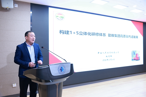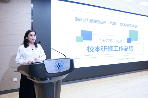 北京交通大学附属中学副校长于伟东以“新时代精准推进‘六度’校本研修体系”为题,分享了集团“十四五”时期校本研修工作总结。对照“十四五”学校校本研修工作方案,以项目式研修为组织形式实现校本研修的普及度,顺应时代需求选准研修内容体现校本研修的贴合度,以“嵌入式”的灵活研修模式实现校本研修的延展度,探索AI赋能教与学的有效路径实现校本研修的便利度,以教师评价为改革引擎提高校本研修的活力度,以成果展示为运行逻辑提高校本研修的增值度,主张理论与实践结合、注重教师个性化发展、关注团队协作与研究、体现了校本研修“六度”特色。