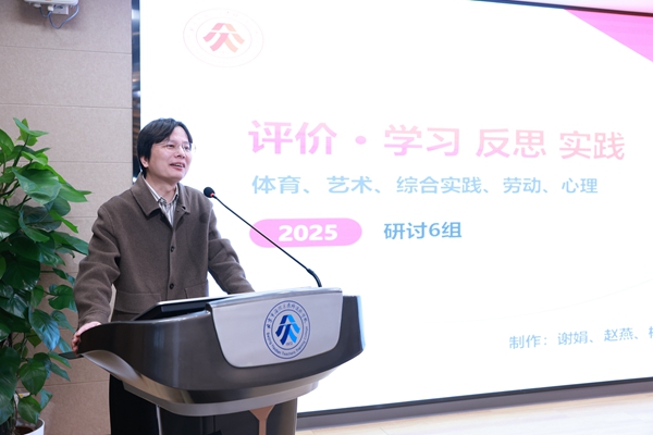 小学教研室副主任杨健老师代表第六组做分享交流。组内教师积极思考并形成三点共识:一是关注学生个体成长,尊重和保护学生的兴趣爱好和个性特点;二是探索多元化评价方式,关注学生“做事”的能力;三是探索面向教师发展的无打扰评价,促进教师认知迭代和创新发展。