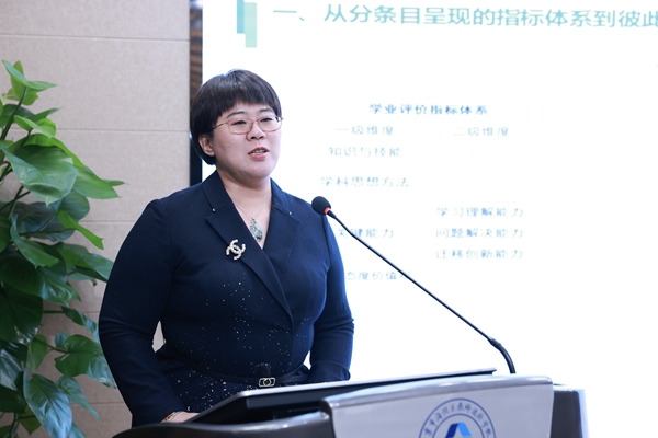 崔琰副校长以“‘双新’背景下物理学科核心素养过程性评价体系研究”为题,分享物理学科核心素养的过程性评价设计与实施路径。教研团队系统构建核心素养过程性评价的指标体系,开发测试题等评价工具,基于对学生过程性表现数据的深入挖掘与分析,精准诊断教师教学和学生学习过程中存在的难点问题,进而有效指导教师优化课程设计,促进学生核心素养的发展。