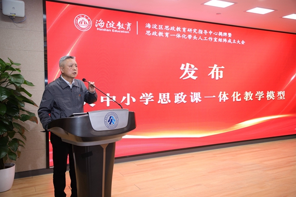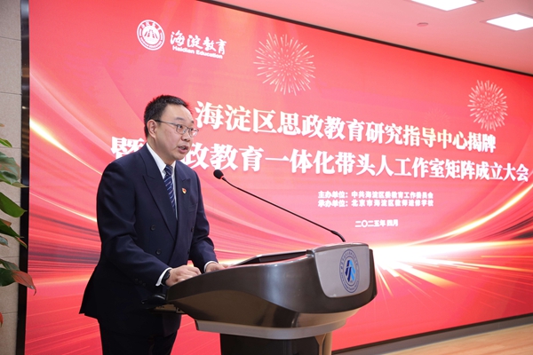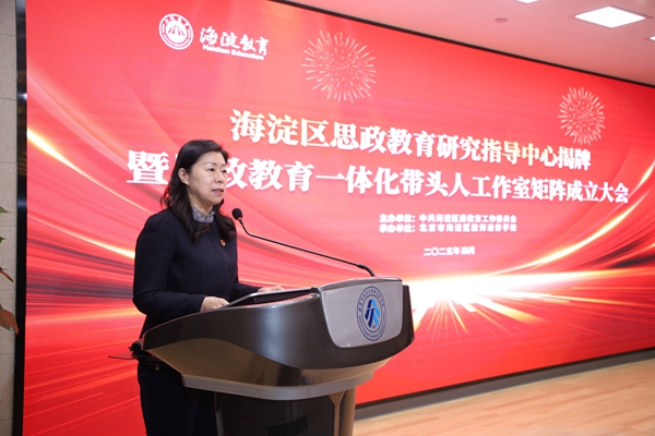 海淀区教工委吴谨副书记宣读“成立思政教育一体化带头人工作室矩阵”的决定